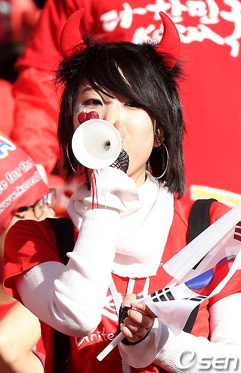 경기전 한국 응원단이 부부젤라를 불며 열띤 응원을 펼치고 있다. /spjj@osen.co.kr