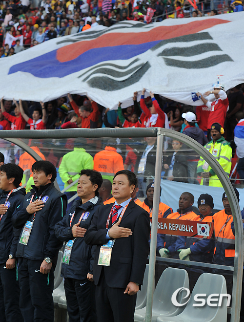 경기전 허정무 감독이 애국가를 부르고 있다. /spjj@osen.co.kr