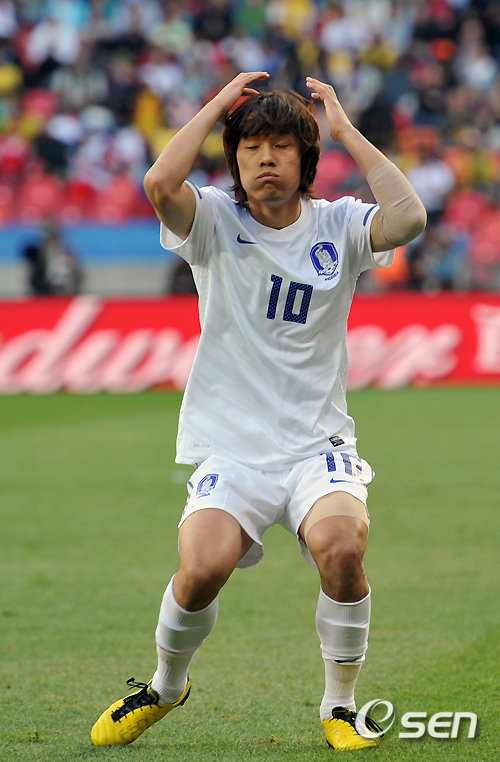 전반 박주영이 프리킥이 골대를 맞추며 아웃되자 아쉬워하고 있다. /spjj@osen.co.kr