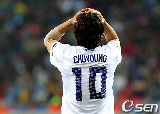 후반 한국 박주영이 슛이 빗나가자 아쉬워하고 있다. /spjj@osen.co.kr