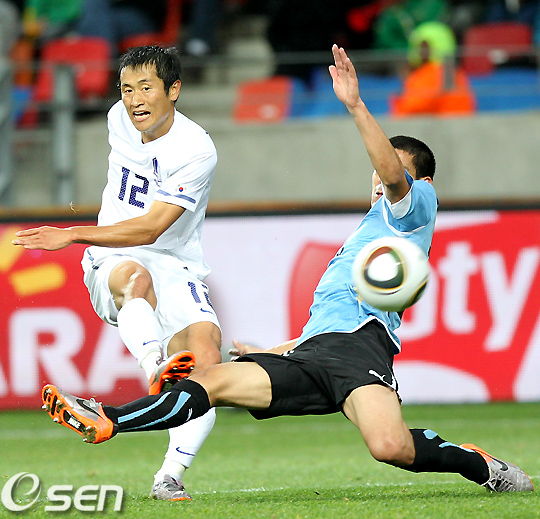 후반 한국 이영표가 우루과이 수비를 피해 중거리슛을 날리고 있다. /spjj@osen.co.kr