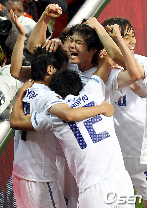 골문 앞에 서있던 이청용은 자신에게 볼이 오자 머리로 가볍게 받아 넣으며 1-1 동점을 만들었다. 한국 축구의 희망인 '썅용'이 비바람을 이겨내며 동점골을 만든 것.