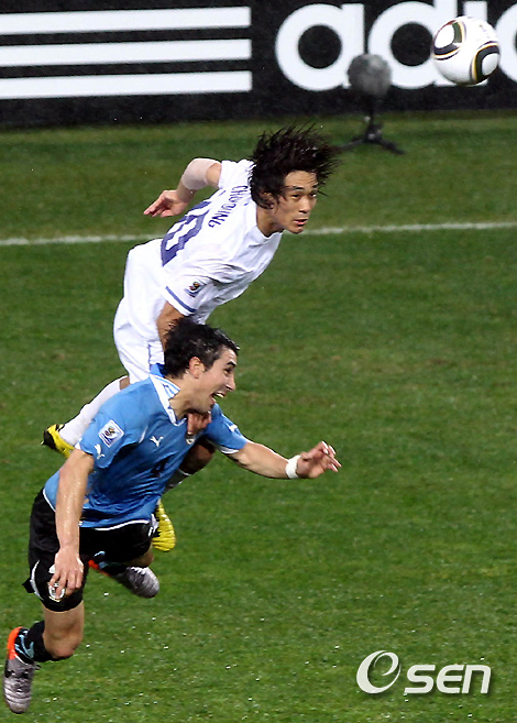 후반 한국 박주영이 우루과이 푸실레와 공중볼을 다투고 있다 /spjj@osen.co.kr