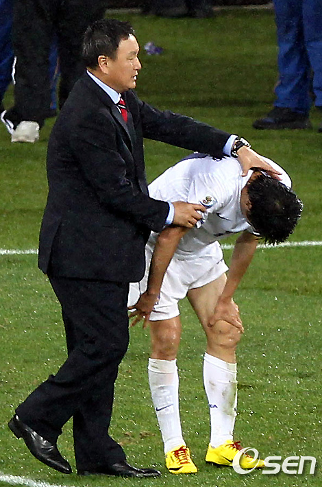 경기 종료후 허정무 감독이 이청용을 격려하고 있다. /spjj@osen.co.kr