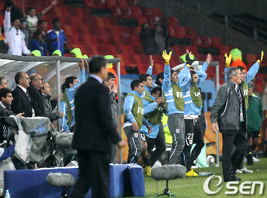 [OSEN/머니투데이=포트 엘리자베스(남아공), 우충원 기자] 허정무 감독이 이끄는 한국 축구 대표팀(FIFA랭킹47위)은 26일(이하 한국시간) 새벽 포트엘리자베스 넬슨만델라베이 스타디움에서 끝난 2010 남아공월드컵 16강 우루과이(16위)와 경기에서 1-2로 석패했다.