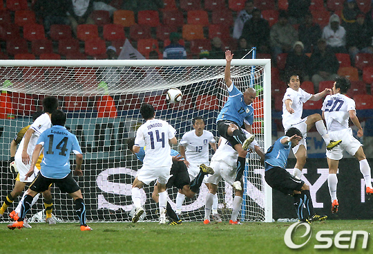 [OSEN/머니투데이=포트 엘리자베스(남아공), 손용호 기자] 허정무 감독이 이끄는 한국 축구 대표팀(FIFA랭킹47위)이 27일(이하 한국시간) 새벽 포트엘리자베스 넬슨만델라베이 스타디움에서 끝난 2010 남아공월드컵 16강 우루과이(16위)와 경기에서 1-2로 패했다.