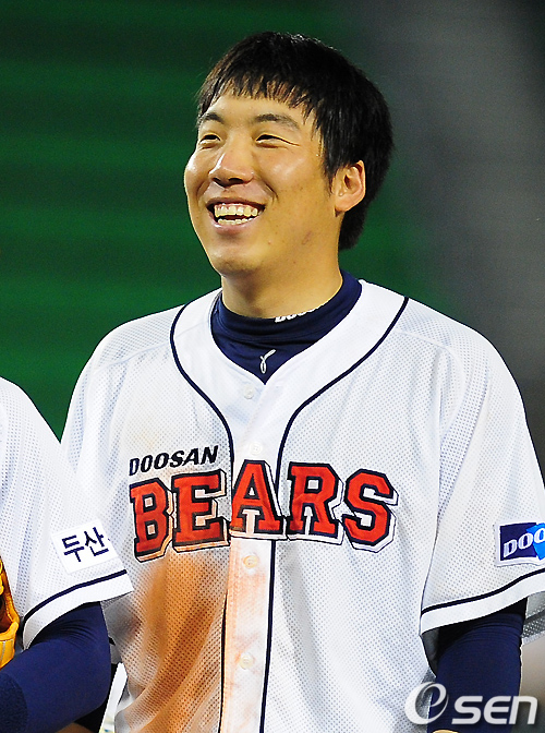 경기를 마치고 두산 김현수가 그라운드 위에서 환하게 미소짓고 있다./rumi@osen.co.kr