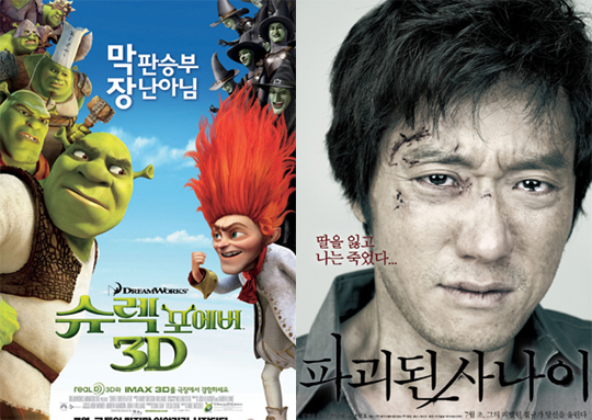 이번 주말인 7월 1일 두 편의 영화가 동시에 개봉한다. 애니메이션의 지존인 ‘슈렉’의 마지막 시리즈인 ‘슈렉 포에버’와 연기 지존인 김명민이 주연을 맡은 영화 ‘파괴된 사나이’다. 월드컵 시즌임에도 불구하고 불꽃 튀는 마케팅, 홍보 전쟁을 벌였던 두 작품, 관객들은 어느 쪽의 손을 더 들어줄지 관심이 모아 지고 있다.