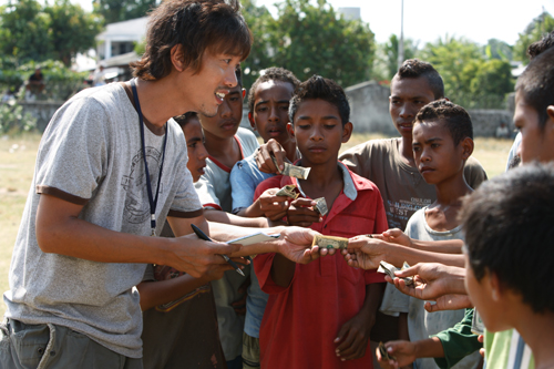 다음 장면은 이 영상의 하이라이트라 할 수 있는 부분이다. 1달러 할부계약으로 가볍게 영어 실력을 뽐낸 원광이 그의 사업에 훼방을 놓는 동티모르 인에게 ‘찌찔란 시스템(할부 시스템)’, ‘바구스(잘한다)’, ‘강구(훼방)’, ‘띠푸(사기)’ 등, 입에 착착 달라 붙는 떼뚬어를 속사포 랩 같이 쏟아내는 장면은 모두가 ‘빵~’ 터지게 될 만큼 유머러스하다.