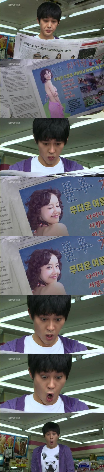 편의점에서 라면으로 끼니를 때우며 신문을 보던 강호는 지면광고에 비키니를 입고 등장한 모델이 갑자기 다혜로 오버랩되자 눈이 번쩍 뜨인다. 갑자기 신문 속 다혜가 살아 움직이기 시작하며 요염한 포즈로 윙크와 섹시 미소까지 날리자, 당황한 강호는 신문을 덮으며 놀란 가슴을 쓸어내린다.