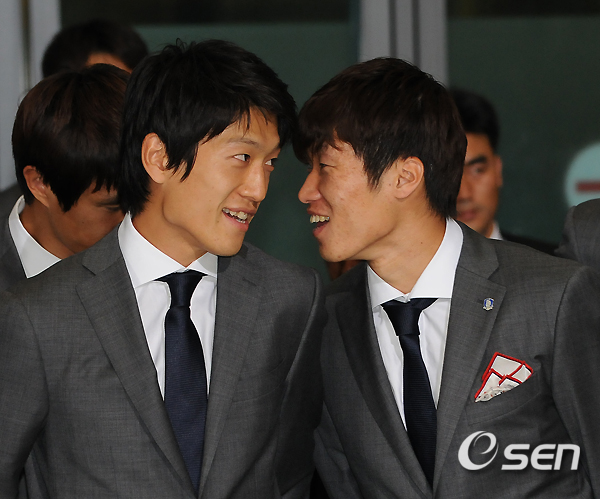 박지성이 이청용과 귓속말로 이야기를 하고 있다./ ajyoung@osen.co.kr