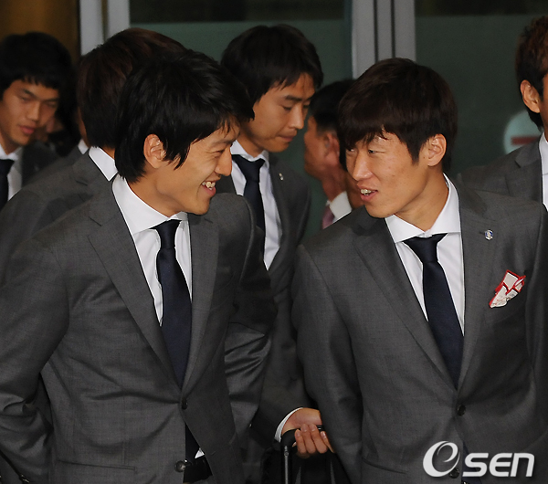 박지성 이청용이 이야기를 나누며 웃음을 지어보이고 있다./ ajyoung@osen.co.kr