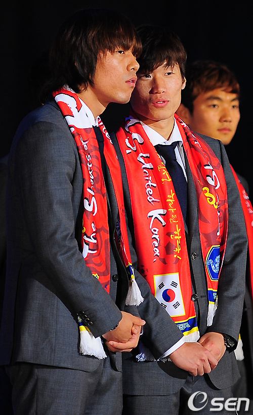 무대 위에서 박지성과 박주영이 즐겁게 얘기를 나누고 있다. /rumi@osen.co.kr