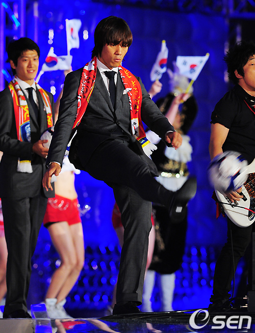 무대 위에서 박주영과 팬들에게 사인볼을 차주고 있다. /rumi@osen.co.kr