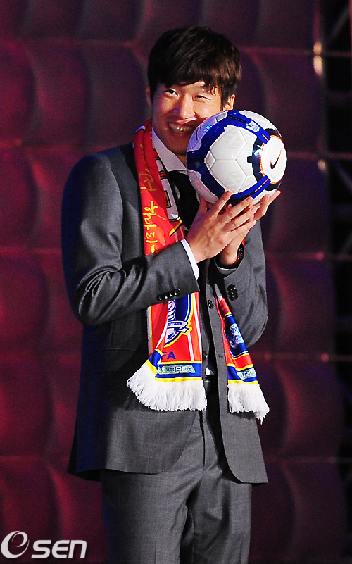 무대 위에서 박지성이 쑥스럽게 미소짓고 있다./rumi@osen.co.kr