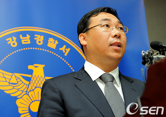 곽정기 서울 강남경찰서 형사과장이 30일 오후 배우 박용하 사망관련 브리핑을 하고 있다.