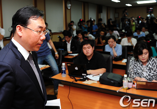 곽정기 서울 강남경찰서 형사과장이 30일 오후 배우 박용하 사망관련 브리핑을 마치고 나서고 있다.