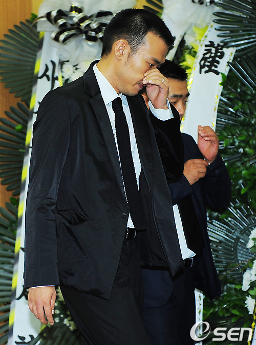 김진표가 눈물을 닦으며 빈소에서 나오고 있다./rumi@osen.co.kr