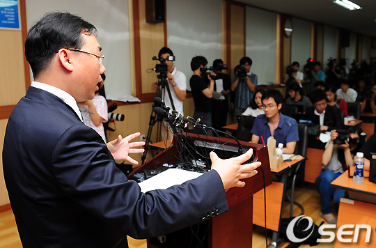 곽정기 서울 강남경찰서 형사과장이 30일 오후 배우 박용하 사망관련 브리핑을 하고 있다.