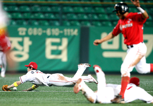 조동화가 2루 내야안타로 한 점을 뽑고 2사후 정근우의 3유간을 가르는 2타점 적시타를 날려 동점을 만들었다. KIA는 승기를 잡은 상황에서 투수교체 타이밍, 어이없는 실책과 함께 블론세이브가 나오는 순간이었다. KIA 덕아웃은 낭패감에 휩싸였다.