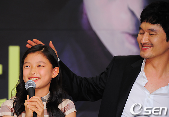 기자회견중 장현성이 김유정의 머리를 쓰다듬고 있다./rumi@osen.co.kr