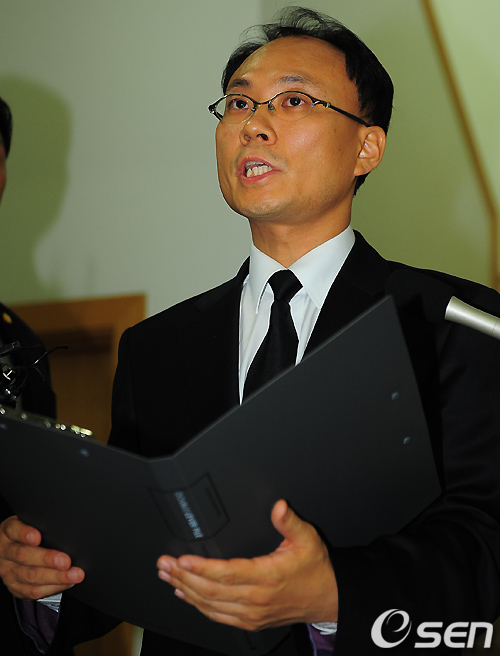 박용하의 매형 김재현 씨가 서울성모병원 장례식장에 마련된 故 박용하(33)의 빈소 앞에서 브리핑을 하고 있다.