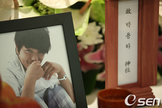 2일 새벽 서울 반포동 강남성모병원 장례식장에 마련된 故 박용하(33)의 빈소 영정사진이 공개되고 있다.