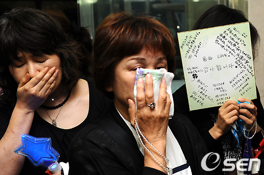 일본팬들이 울먹이며 발인식을 기다리고 있다. /jpnews@osen.co.kr