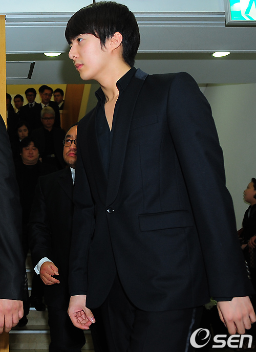 2일 새벽 서울 반포동 강남성모병원 장례식장에 마련된 故 박용하(33)의 발인식이 진행됐다. SS501의 김형준이 운구행렬을 따르고 있다.