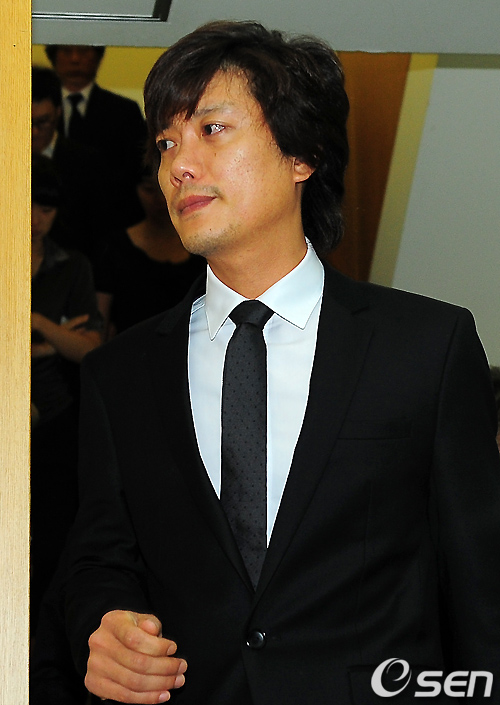 2일 새벽 서울 반포동 강남성모병원 장례식장에 마련된 故 박용하(33)의 발인식이 진행됐다. 박희순이 눈물을 흘리며 운구행렬을 따르고 있다.