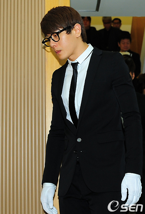 2일 새벽 서울 반포동 강남성모병원 장례식장에 마련된 故 박용하(33)의 발인식이 진행됐다. 박효신이 운구행렬을 따르고 있다.