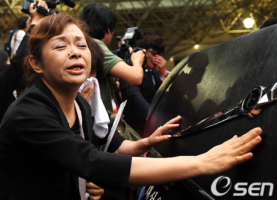 일본팬이 故 박용하의 운구차를 두드리며 울먹이고 있다. /jpnews@osen.co.kr