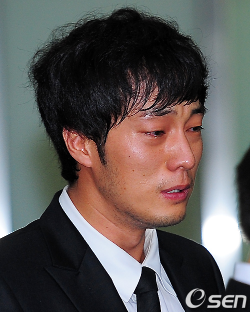 2일 새벽 서울 반포동 강남성모병원 장례식장에 마련된 故 박용하(33)의 발인식이 진행됐다. 소지섭이 눈물을 흘리고 있다.