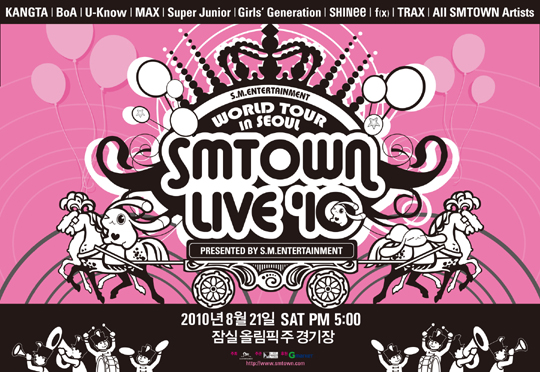 이번 ‘SMTOWN LIVE '10 WORLD TOUR’에는 강타, 보아, 유노윤호, 최강창민, 슈퍼주니어, 소녀시대, 샤이니, f(x), 트랙스 등 소속 가수가 총 출동, 장장 5시간 동안 화려한 스테이지는 물론 SMTOWN LIVE에서만 만날 수 있는 조인트 무대 등도 선보인다. SMTOWN LIVE는 이미 2008년 서울, 상하이, 방콕 등 아시아를 뜨겁게 달군 바 있다.