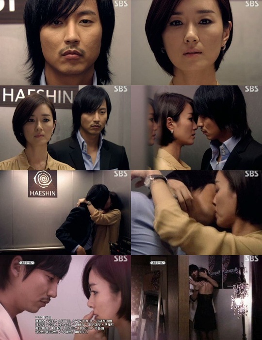 1일 방송된 ‘나쁜남자’에서는 엘리베이터에서 건욱(김남길)과 맞닥뜨린 태라(오연수)가 욕망을 참지 못하고 뜨거운 키스를 퍼부었다.