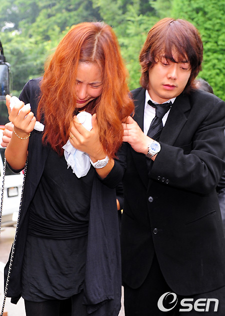 화장된 故 박용하의 유골함을 배우 김준희가 뒤를 따르고 있다. /soul1014@osen.co.kr