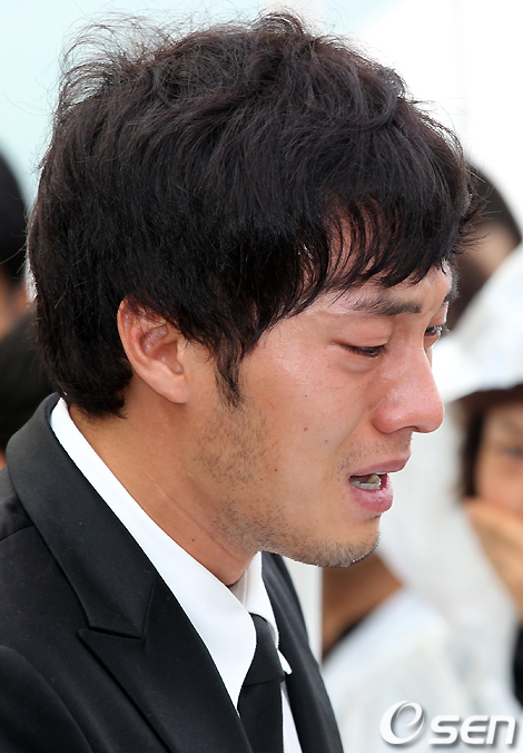 빈소가 마련됐던 서울 반포동 강남성모병원에서는 이날 오전 6시가 조금 넘은 시각, 절친 소지섭을 비롯한 유족들이 고인의 영정을 들고 현관으로 나섰다. 하늘에서 부슬부슬 비가 내리는 가운데 수백여 명의 팬들이 몰려 고인의 가는 길을 배웅했다.