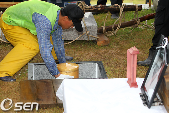 故 박용하의 유골함이 안장되고 있다. /jpnews@osen.co.kr