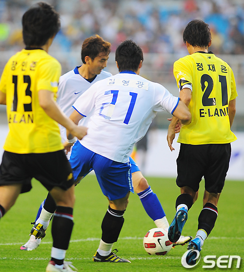 이영표(33, 알 힐랄), 박주영(25, AS 모나코), 기성용(21, 셀틱), 이정수(30, 가시마 앤틀러스), 이승렬(21, FC 서울) 등을 이끌고 올스타축구팀의 감독으로 나선 박지성의 모습은 이색적이었다.