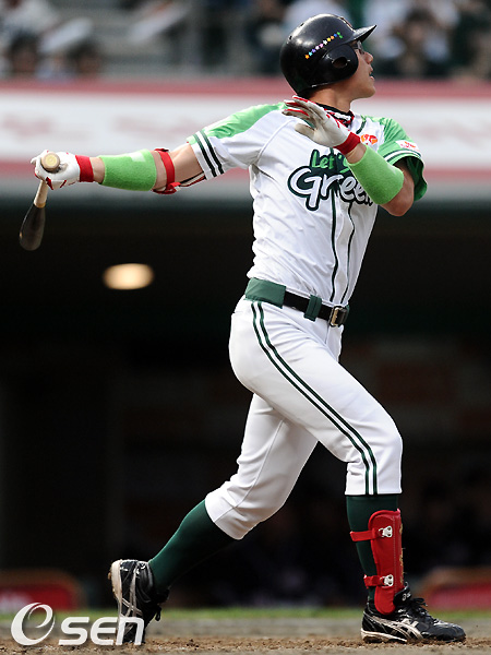 5회말 2사 만루 SK 박정권이 좌익수 왼쪽에 떨어지는 역전 3타점 2루타를 날리고 타구를 바라보고 있다. /soul1014@osen.co.kr