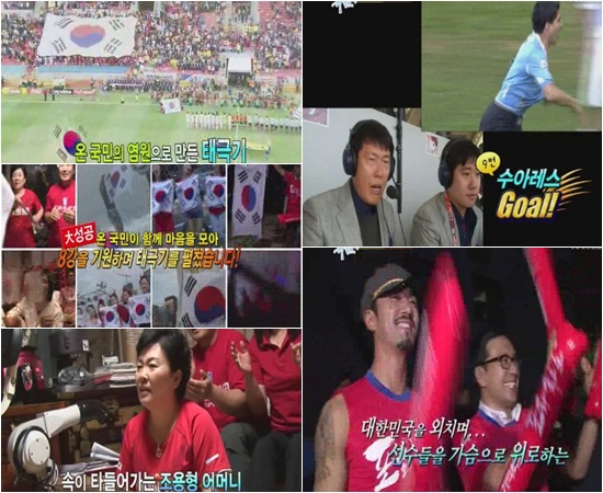 한편 월드컵 특집으로 마련된 '태극기 휘날리며'는 월드텁 개막부터 우루과이전, 태극전사들의 한편 귀국에 이르기까지 현장의 구석구석과 국내 응원 풍경의 이모저모를 담아냈다.