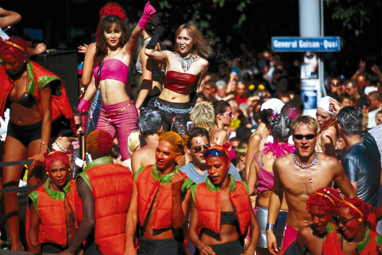축제의 하이라이트는 4m 높이의 ‘러브모빌(Love Mobile)’이라 불리는 댄스 무대용 수레. 퍼레이드에 참여하는 100만여명의 군중 사이로 수레가 움직이며 각종 테크노댄스를 선보인다. 올해는 국제적인 스타들이 선사하는 최신 일렉트로닉 뮤직 공연을 위해 6개의 대단위 무대와 30개의 ‘러브모빌’이 운영된다.