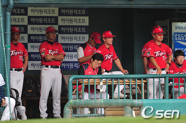 1회말 무사 1,2루 김현수에게 스리런 홈런을 허용하자 KIA 조범현 감독이 자리에서 일어나 경기를 관전하고 있다. / ajyoung@osen.co.kr