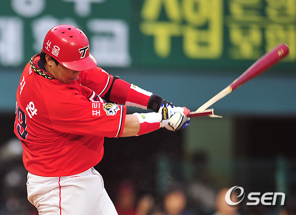 4회초 무사 1루 나지완 방망이가 부러지면서 내야땅볼 아웃처리되고 있다./ ajyoung@osen.co.kr
