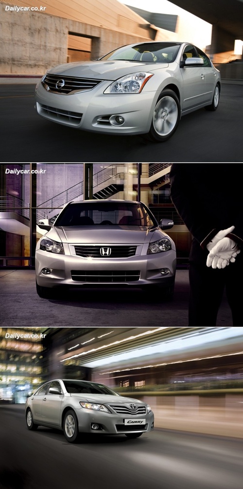 수입 중형세단 시장에서 닛산 알티마와 혼다 어코드, 토요타 캠리의 경쟁은 더욱 치열해지고 있어 소비자들의 관심을 더욱 높이고 있다.