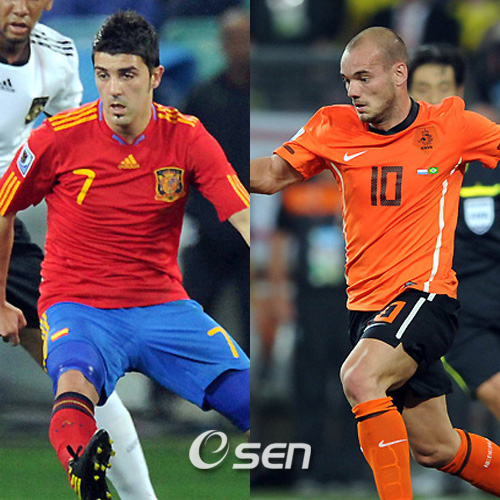 다비드 비야(29, 스페인)와 웨슬리 스네이더(26, 네덜란드)가 월드컵 사상 5번째로 우승과 득점왕 동시 달성을 놓고 격돌하게 됐다.