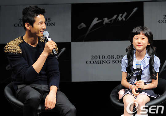 원빈과 김새론이 질문에 답을 하며 즐거워하고 있다. /jpnews@osen.co.kr