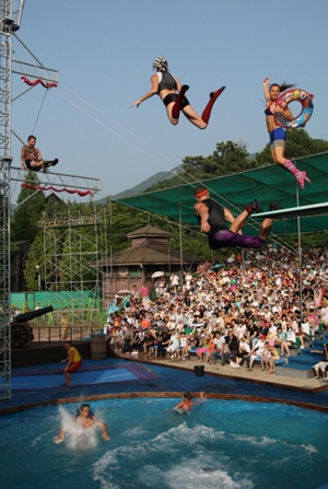스턴트 다이빙쇼는 10일부터 8월22일까지 모험의 나라 해적선 무대에서 무료로 펼쳐진다.