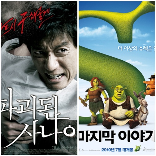 영화 ‘파괴된 사나이’와 ‘슈렉 포에버’가 1위 자리를 놓고 선의의 경쟁을 펼치고 있는 가운데 7월 중순 ‘이끼’와 ‘이클립스’가 개봉하면서 올 하반기 극장가의 치열한 순위 다툼이 예상되고 있다.