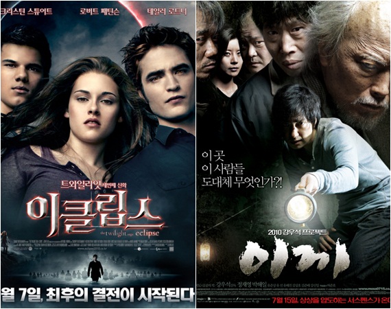 두 영화에 더해 7일 개봉한 ‘이클립스’와 다음 주 개봉하는 ‘이끼’도 하반기 극장가 4파전에 동참한다. ‘트와일라잇’ 시리즈의 세 번째 작품 ‘이클립스’는 방대한 스케일과 화려한 CG로 무장한 블록버스터로 여름 극장가의 판도를 크게 변화시킬 것으로 예상된다.